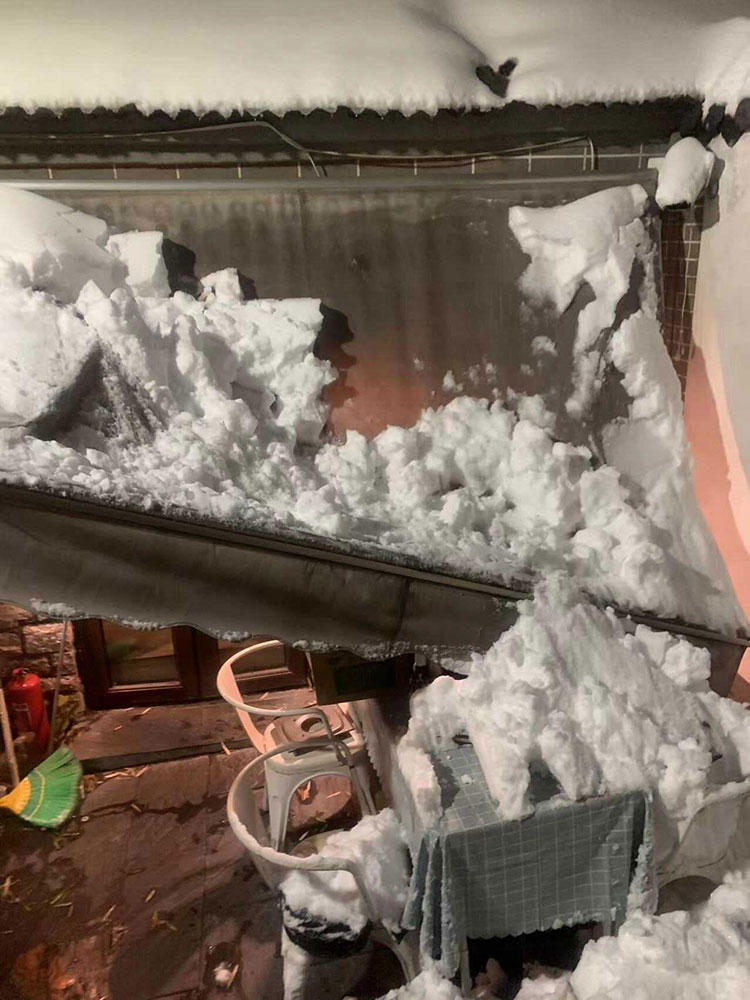 辛うじて店に着いたら、雪で扉が開かないし、テントは倒壊、笹の木も倒壊という有様。