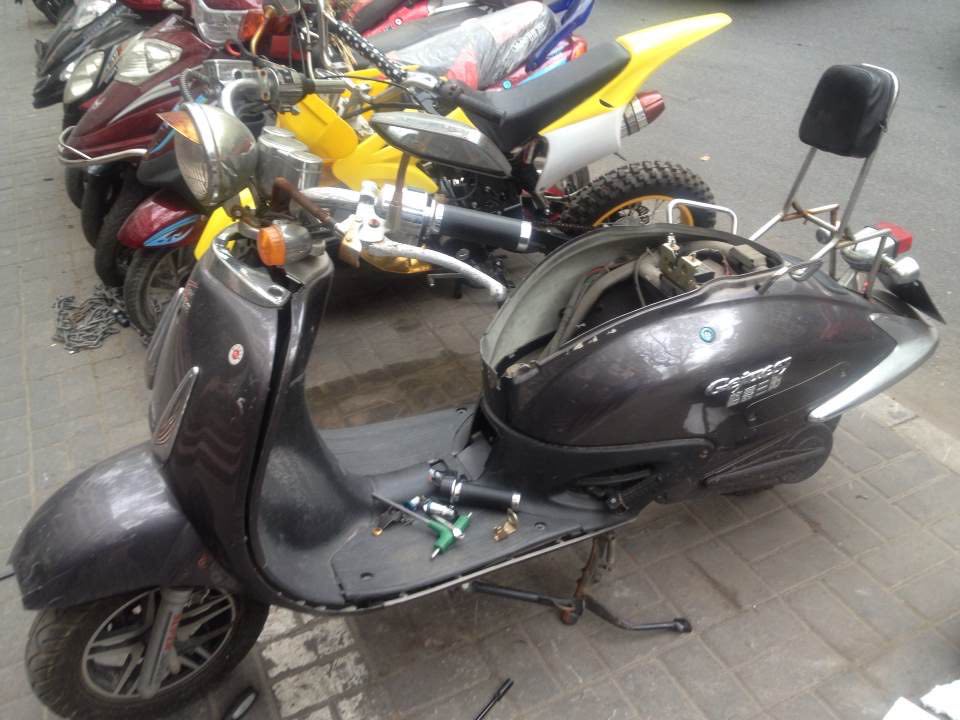 値段はだいたい日本円で約30000円〜でして、まぁこれが中々スピード出るんです。改造したらMAX100キロは出ます。そんな電動バイクを路上駐車して2ヶ月。ある日キーを入れて電源オンにしてもうんともすんとも言わず、仕方なく顔馴染みのバイク販売店に持って行き、座席下のバッテリーを確認したら、何とまんまバッテリーが盗まれているという。