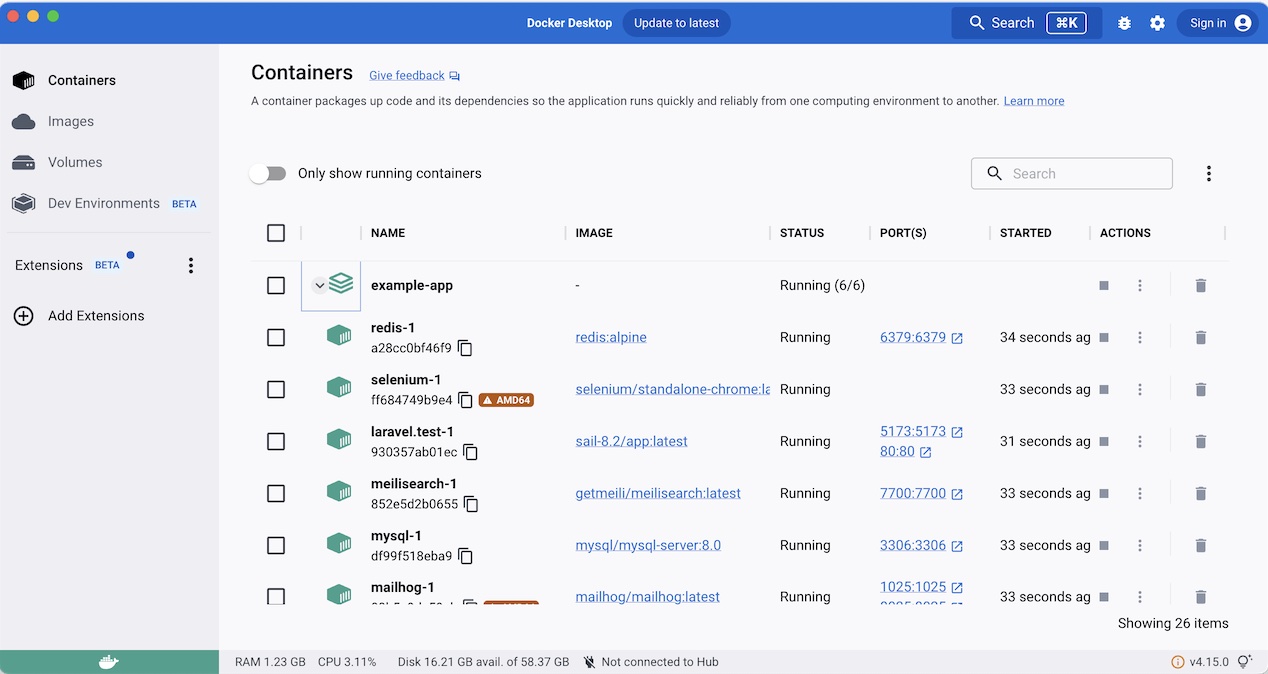 cd example-app && ./vendor/bin/sail up -d
