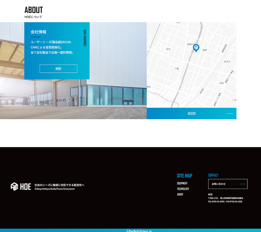 昭和43年に設立、富山県南砺市に工場をもち、自動車部品の設計から加工、検品まで行うHOE様のサイトを リニューアルしました。昭和43年に設立、富山県南砺市に工場をもち、自動車部品の設計から加工、検品ま で行うHOE様のサイトをリニューアルしました。