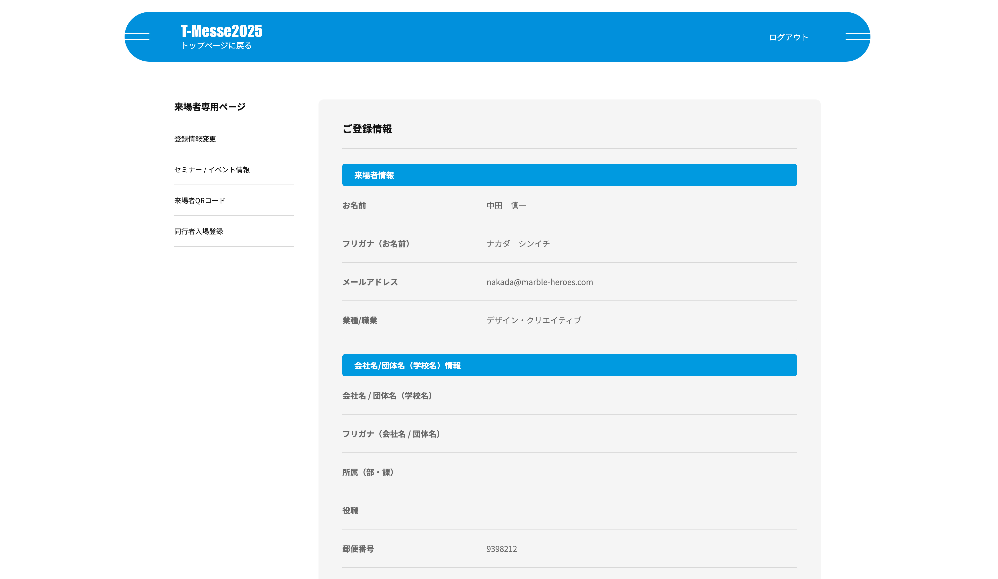 来場者専用マイページ